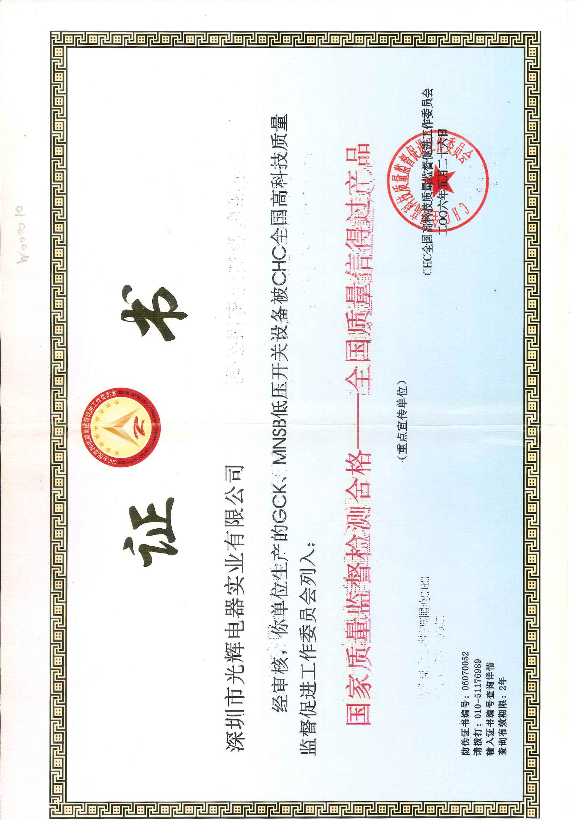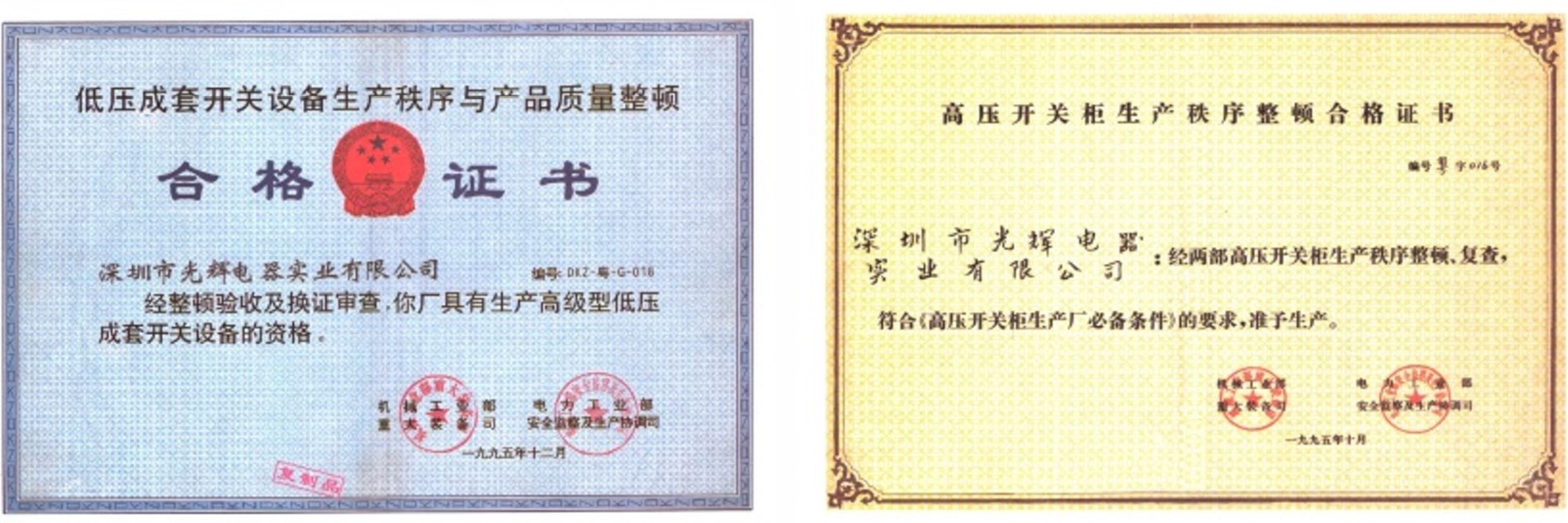 机械工业部和电力工业部联合审查通过并颁发“两部红证”,成为广东省12家合格单位之一,是最早的行业许可证。
