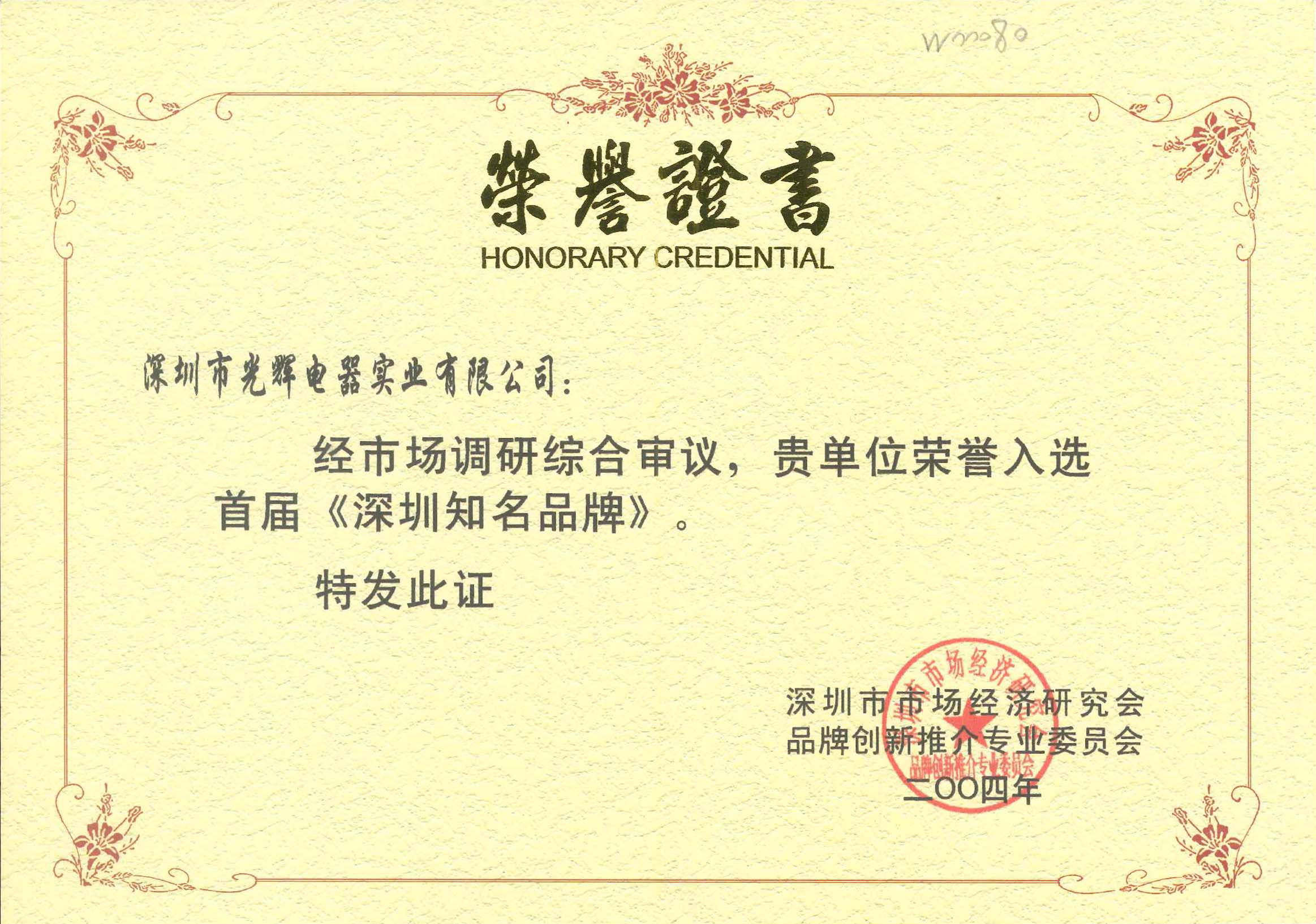 荣获“深圳市知名商标企业”和“深圳市知名品牌企业”。