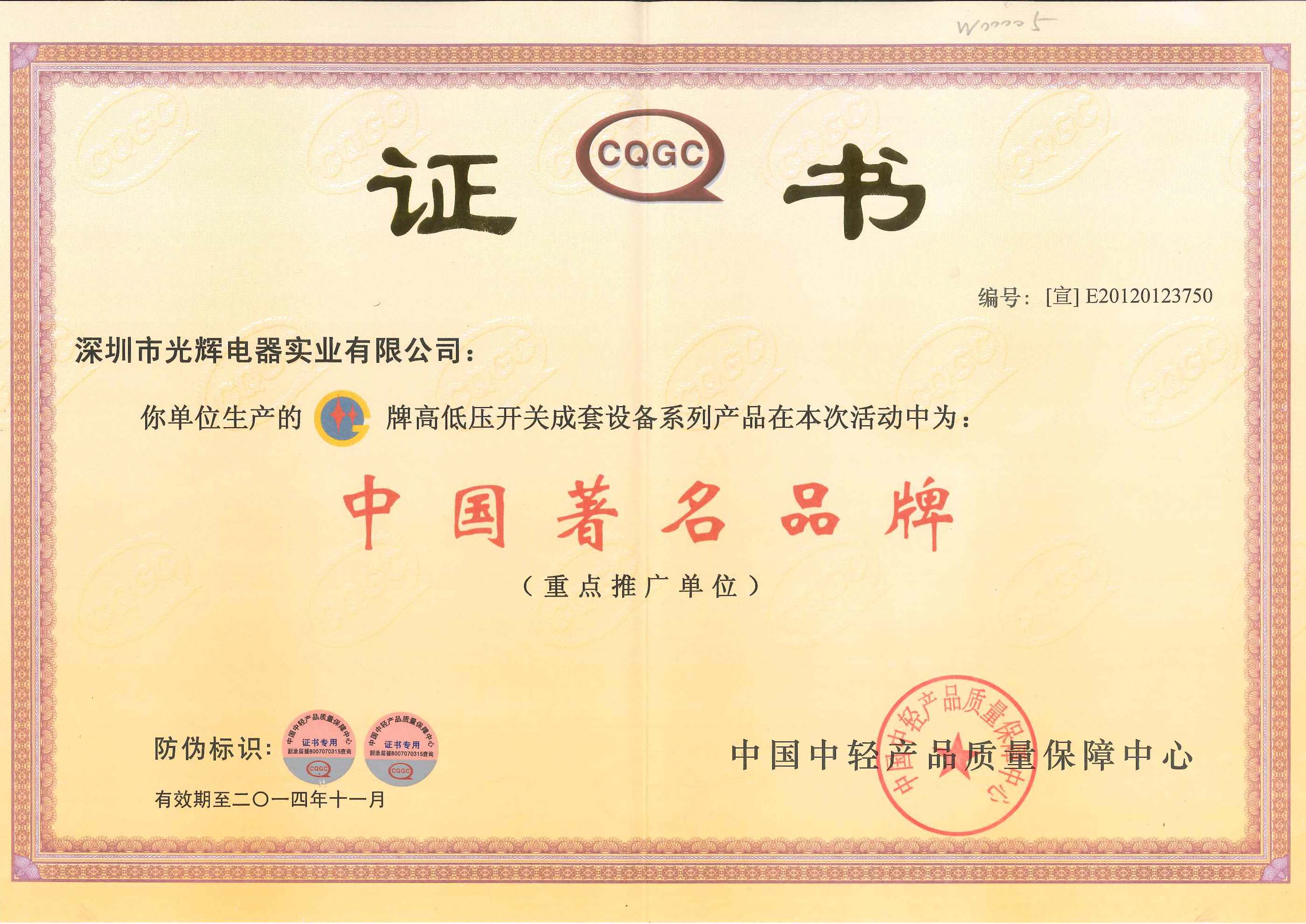 荣获“中国著名品牌”重点推广单位