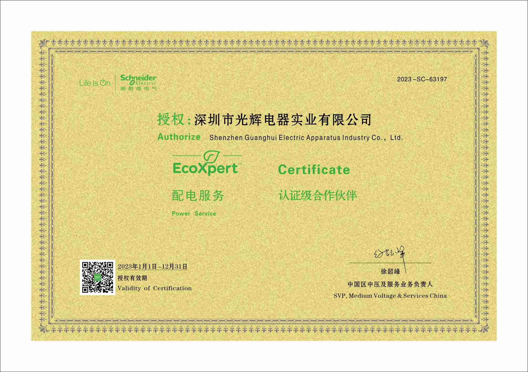 我司获得施耐德电气 (中国) 有限公司颁发的年度战略房地产紧密合作伙伴证书。