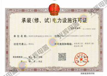 公司取得了三级“承装 (修、试)电力设施许可证”证书。